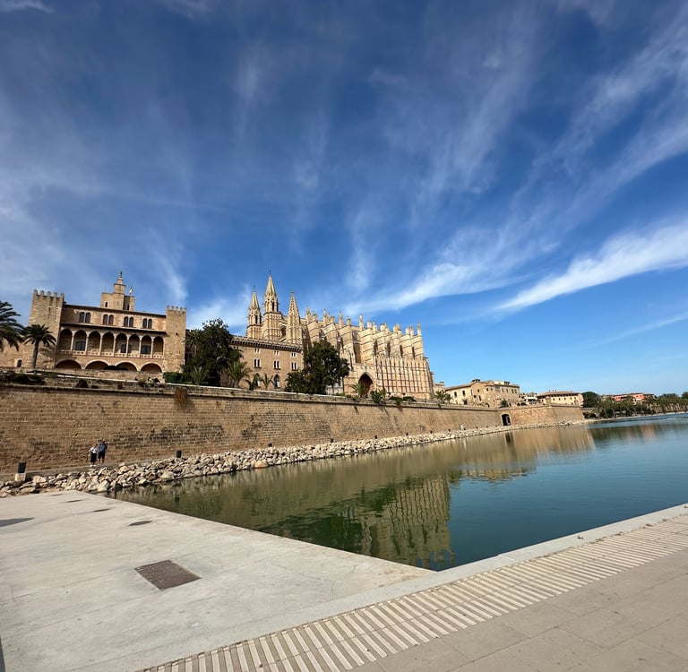 Catedral de Palma: Uma das catedrais góticas mais impressionantes da Europa, com vitrais deslumbrantes e vista para o mar. Ao lado fica o Palácio de La Almudaina, antiga residência real, com belos jardins.
