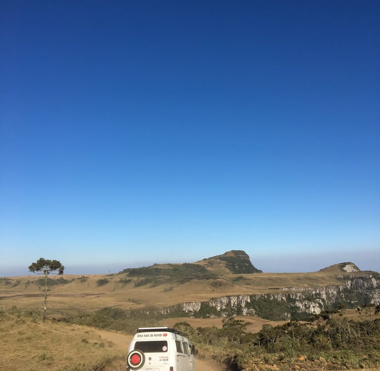 Outra opção é visitar o Canion Espraiado, onde é recomendado subir a estrada de veículo 4x4. Chegando no topo, a equipe aluga botas de borracha para quem tiver interesse para realizar a trila - se estiver frio, recomendo 100%, afinal, dependendo da época, há espaços em que é inevitável afundar nos gramados. Neste Canion há um famoso balanço na borda, que proporciona belas fotos, mas também frio na barriga.